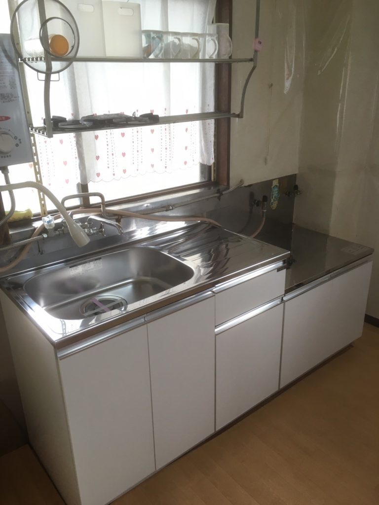 旭区アパート:団地や、アパートなどに良く見かける、組み合わせ型のキッチン(マイセット)などは、交換だなら、1時間程度で施工完了します。ただし、床のクッションフロアーなどが、新しいキッチンと、既存のキッチンの大きさの若干の違いで、張替になる場合がほとんどです。注意。
