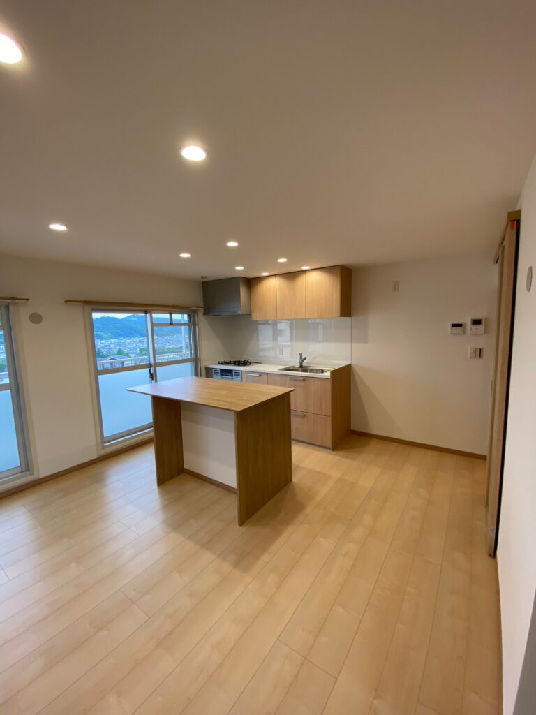 逗子市の団地:団地のダイニングキッチンと、洋室をつなげて、12帖のLDKにしました。